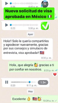En este espacio, compartimos orgullosamente las experiencias de decenas de personas que, con nuestra asistencia, han obtenido su visa de turismo. Respetando la privacidad y comodidad de nuestros clientes, nos abstuvimos de publicar datos personales y de solicitar testimonios en video. Tu confianza y satisfacción son nuestro mayor testimonio.